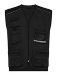 • Gilet multitasche unisex collo a V, chiusura con zip a vista. 10 tasche anteriori incluso taschino per cellulare e porta badge, 2 tasche posteriori.